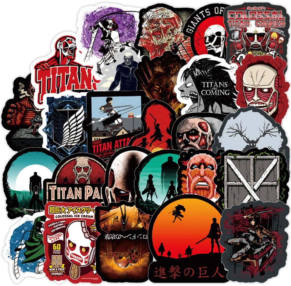 Amazon Com 100 Pcs Trendy Caricature Vinyl Stickers For Attack On Titan Funny Waterproof Stickers For Laptop Waterbottle Flask Phone Mack Book Guita Car Ps4 Decals For Kids Boy Girls Teens Computers Accessories